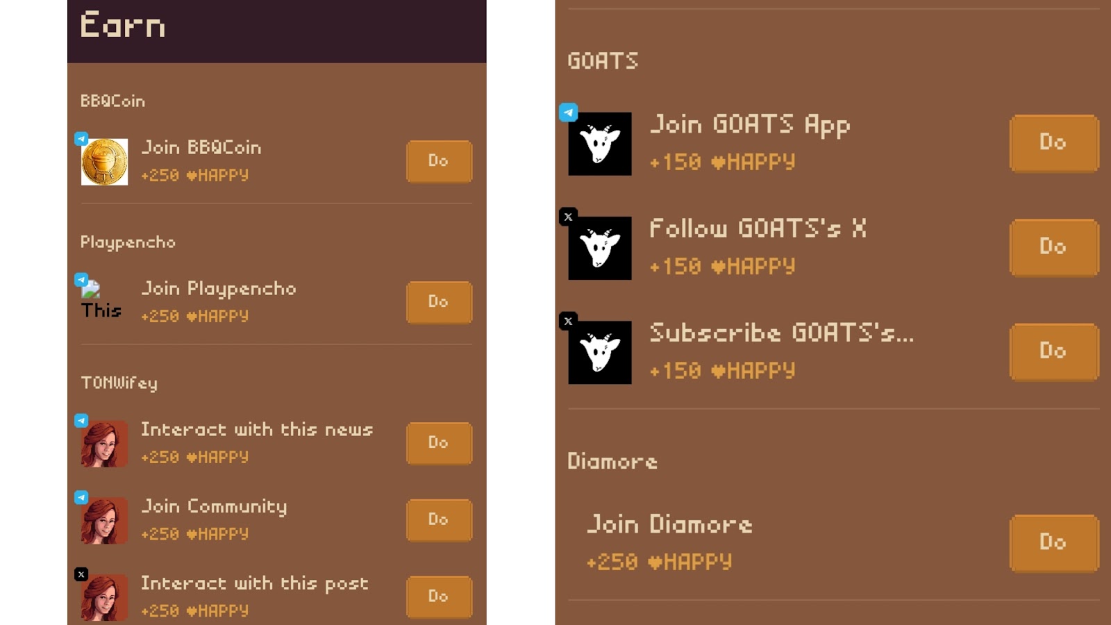 Вверху экрана будет виден статус полученных WIFEY и TON. Игроки могут получать доход за выполнение заданий от разработчиков Ton Wifey. Пользователям предлагают: