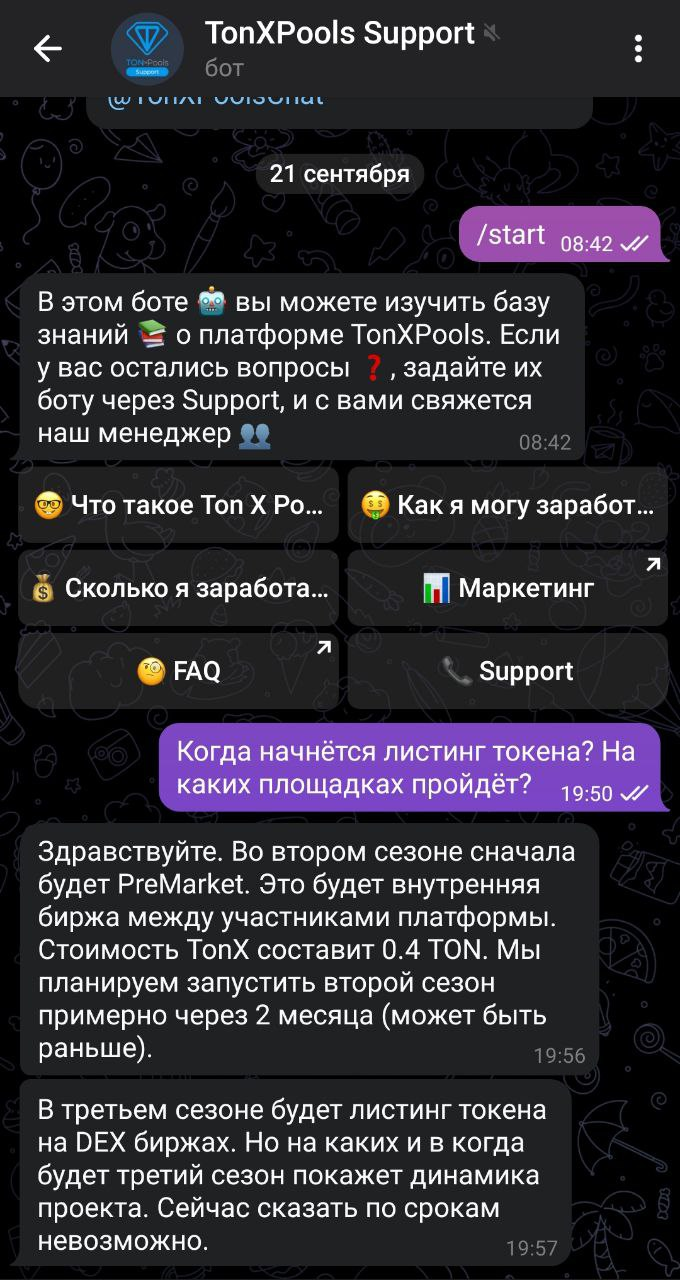 Нам известно, что второй сезон будет, примерно, в ноябре 2024 года, судя по ответу поддержки “Tonxpools support bot”.
