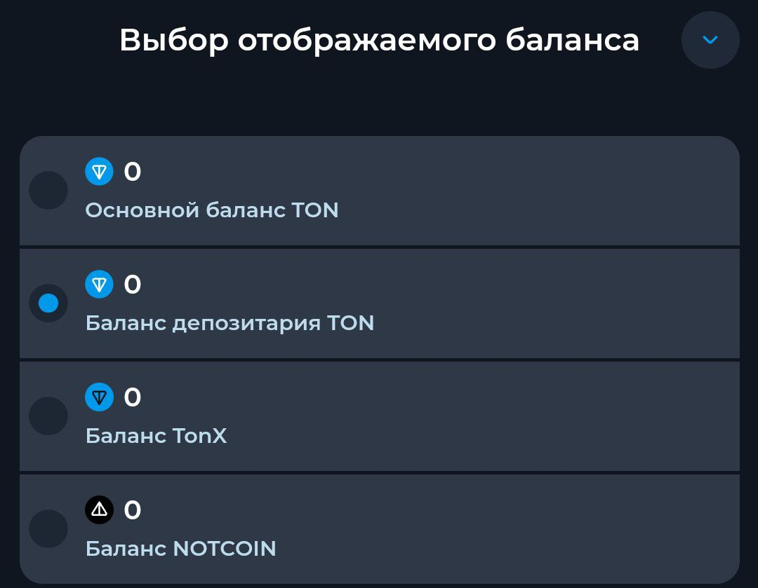 Есть 4 баланса: основной, депозитария, баланс “TonX” и “Notcoin”.