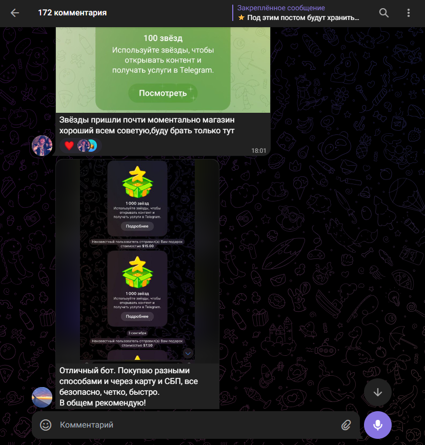 Оставьте комментарий, если покупали через Tony Stars bot Telegram Stars, TON и Premium или просто хотите поделиться своим мнением о проекте.