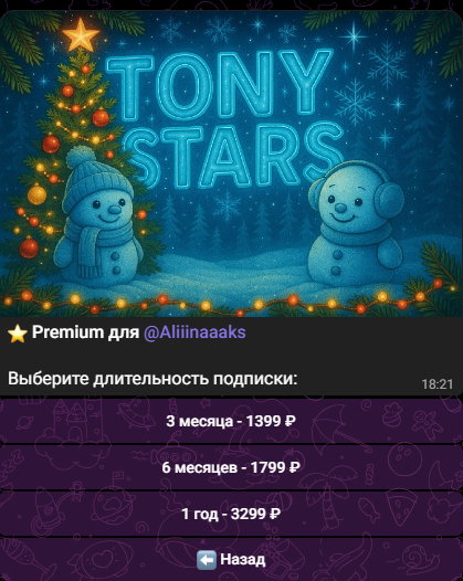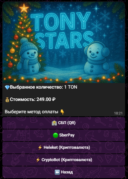 - Tony Stars bot предлагает ограниченные варианты оплаты, что может быть удобно не для каждого;