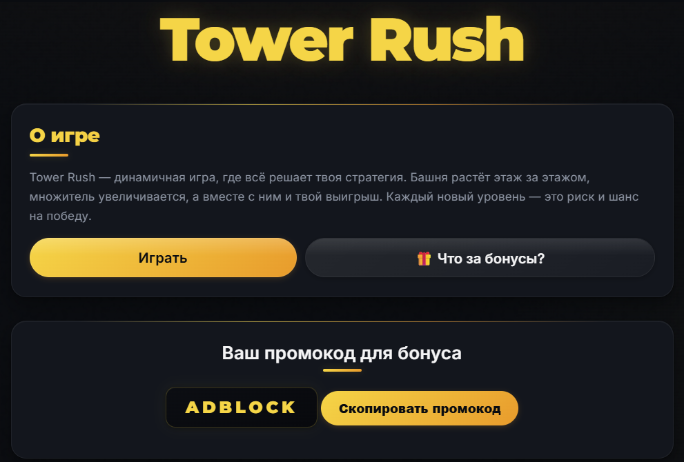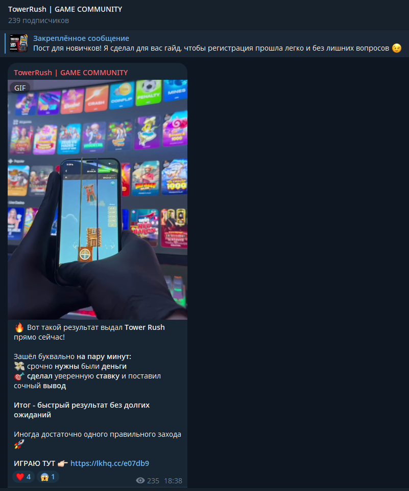 - в телеграм канале намеренно демонстрируют только выигрыши в Tower Rush;