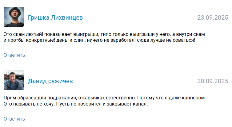 Найденный в Telegram канал, возможно, даже не связан с сайтом. Тем не менее у обоих ресурсов одинаковая цель – привлечь рефералов в казино и заработать на этом. Методы используются соответствующие: в сообществе регулярно публикуют скриншоты с большими выигрышами. Однако стоит понимать, что шанс проиграть почти всегда выше.