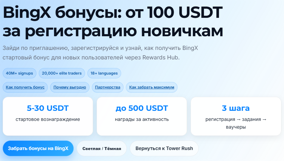 Обещанные дополнительные бонусы внизу, как оказалось, даже не связаны с игрой Тавер Раш, а выдаются за действия на сторонней бирже. Видимо, так создатели площадки решили дополнительно подзаработать.Если же все-таки нажать играть, то нас перенаправит на сайт нелегального онлайн-казино. Помимо того, что у него сомнительная репутация, сам бот Tower Rush мы даже не нашли в списке игр.