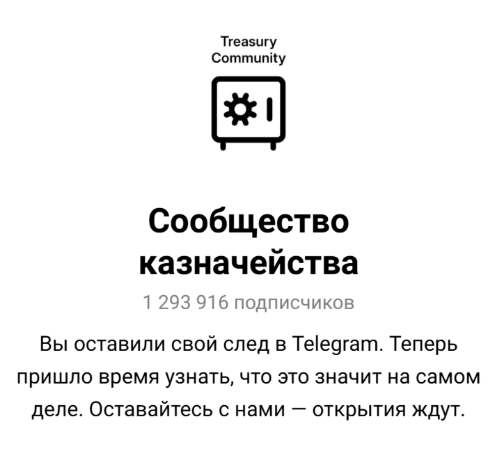 Официальный канал игры Treasury в ТГ запущен 7 марта 2025-го, но первая запись сделана только 16 числа. В новых публикациях команда создателей стала добавлять публикации общего характера без какой-то конкретики о проекте.