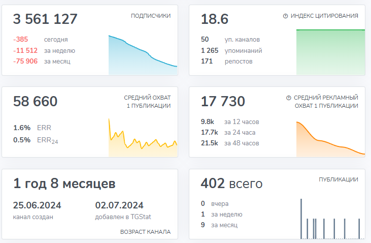 При этом посты набирают не более 60 тысяч просмотров в среднем, наблюдается достаточно активная отписка аудитории. Само приложение тоже не сравнить по популярности с Телеграм-каналом. За последний месяц его открыло лишь 140+ тысяч пользователей.