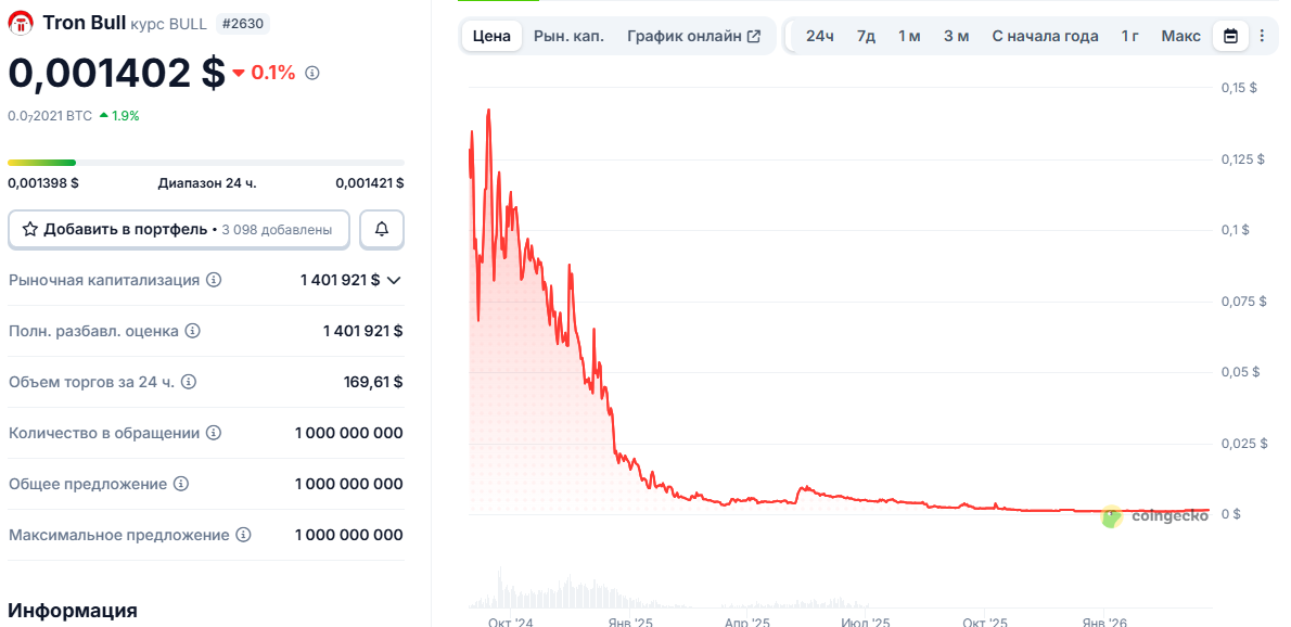 Если оценивать информацию по первой монете – BULL, то можно понять, что заработок на проекте – это слишком громкие слова; Токен после листинга быстро потерял в стоимости, а в 2026 году его объемы торгов доходят до пары сотен баксов в сутки.