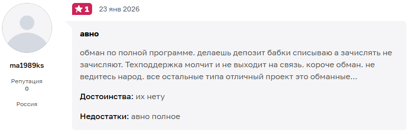 В одном из негативных отзывов комментатор говорит, что проект – обман по полной программе. Он писал в техподдержку. но операторы молчат. Автор комментария не рекомендует участвовать в группе.