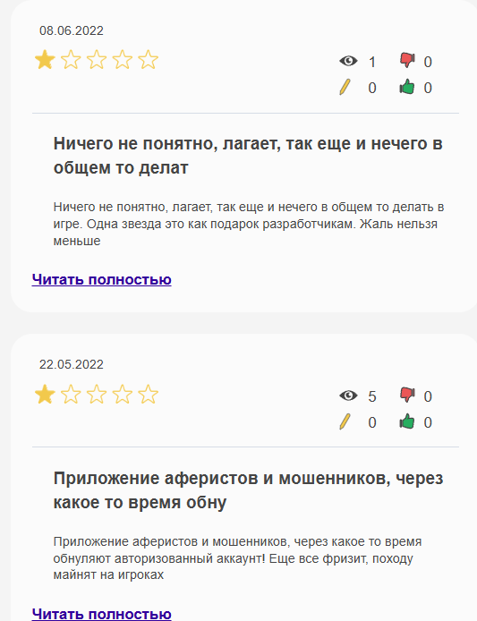 Об игре Upland отзывы встречаются преимущественно отрицательные. Люди жалуются на то, что в игре обнуляется прогресс, она тормозит и некорректно работает. Также встречаются и положительные отзывы, в которых люди довольны игровым процессом, но таких меньшинство. Заработать тут якобы можно через продажу NFT, но с этим чаще всего и возникают проблемы, так как без вложений получить картинку оказывается очень сложно и долго.
