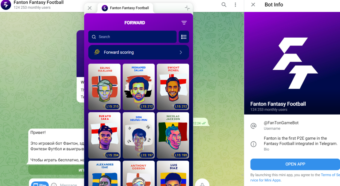 Пользователям предлагают играть в футбол и получать призы. 01.10.2024 года в социальных сетях создатель объявил, что токен бота $FTON пройдет листинг на известных площадках. Среди них: Gate, Kucoin, а также MEXC.