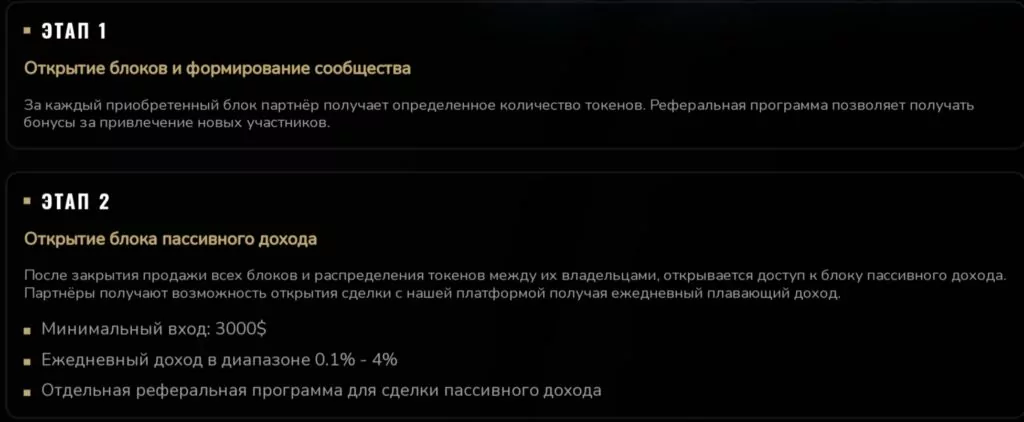 Обещания дохода в 0.1–4 % в день — это цифры, которые выглядят нереально, особенно на фоне отсутствия четкого механизма заработка самой платформы. Все указывает на то, что «Вижн Гейм» – это пирамида. Игрокам делать ничего не надо. Для открытия блоков нужно инвестировать от 10 USDT. Когда общие инвестиции достигнут миллиона долларов, система перейдет к открытию следующего с большей доходностью.Но собрать миллион практически нереально. Из обещанного миллиона собрано только 18 тысяч долларов за две недели. Это показывает очевидную неработоспособность модели как игры и ее ориентацию на быстрый сбор денег инвесторов. Основной акцент на то, чтобы инвестировать больше и приглашать других. Выплаты осуществляются за счет новых участников. Это классический признак финансовой пирамиды.