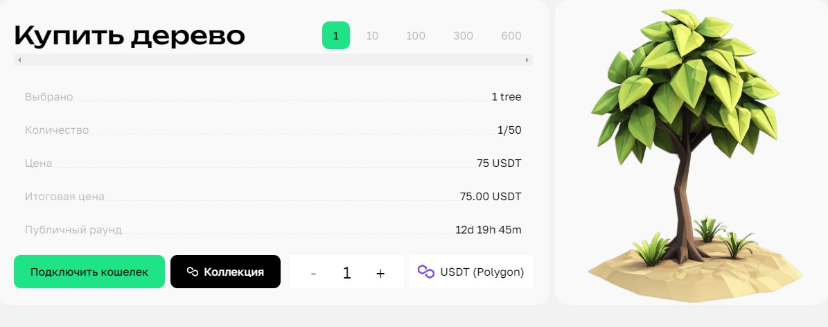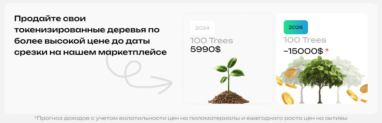 В будущем можно будет продать эти токенизированные деревья на маркетплейсе компании.Обзор сайта и соцсетей