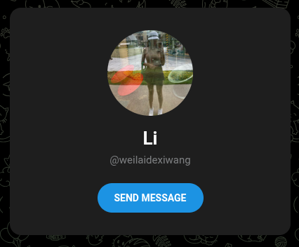 Первый контакт происходит в Telegram. Некто с никнеймом Li (@weilaidexiwang) и фотографией симпатичной азиатки на аватарке пишет потенциальной жертве в личные сообщения. Переписка начинается нейтрально, без прямых предложений о работе. «Менеджер» может несколько дней общаться на отвлеченные темы, создавая иллюзию дружеского знакомства и располагая к себе. Такой подход рассчитан на то, чтобы снизить градус скепсиса и подогреть интерес.