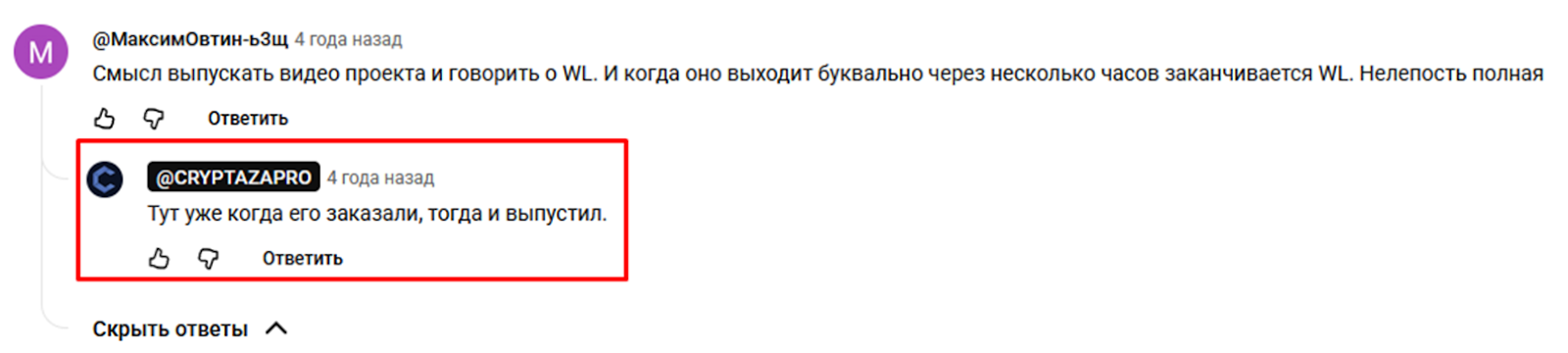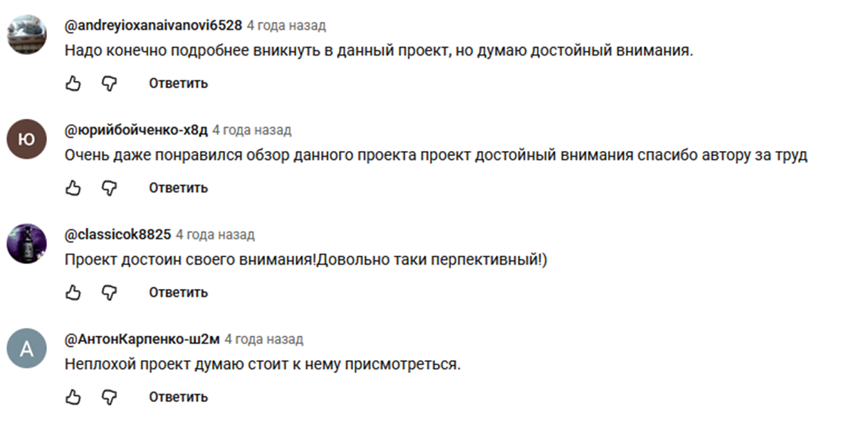 Только под одним роликом есть упоминание о том, что это заказное видео и автору заплатили. Блогер подписал обзор, как «рекламный и спонсорский продукт». На вопросы подписчиков, почему видео выпущено за пару часов до окончания проекта, признался, что ролик заказали именно на это время. Подобные замечания не прибавляют популярности проекту и не повышают уровень доверия к подобным играм.