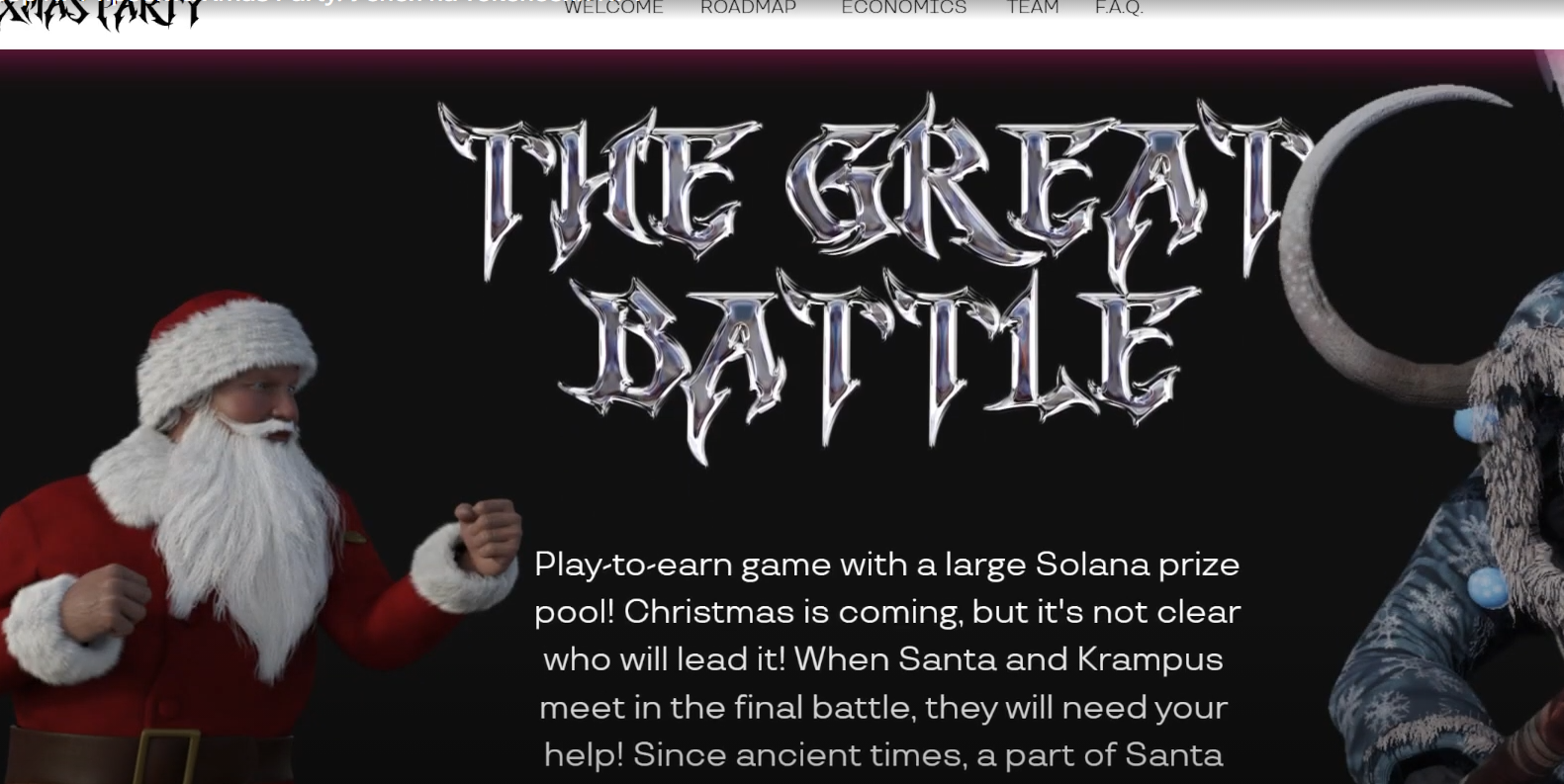Инвестиционно-игровой проект XMAS Party был впервые заявлен в конце лета 2022 года. Он указан в качестве увлекательного приложения, где можно быстро заработать крипту (Солана), участвуя в рождественских битвах между Сантой и Крампусом. Потенциальным игрокам обещали увлекательный геймплей, минимальные вложения и большой выигрыш.