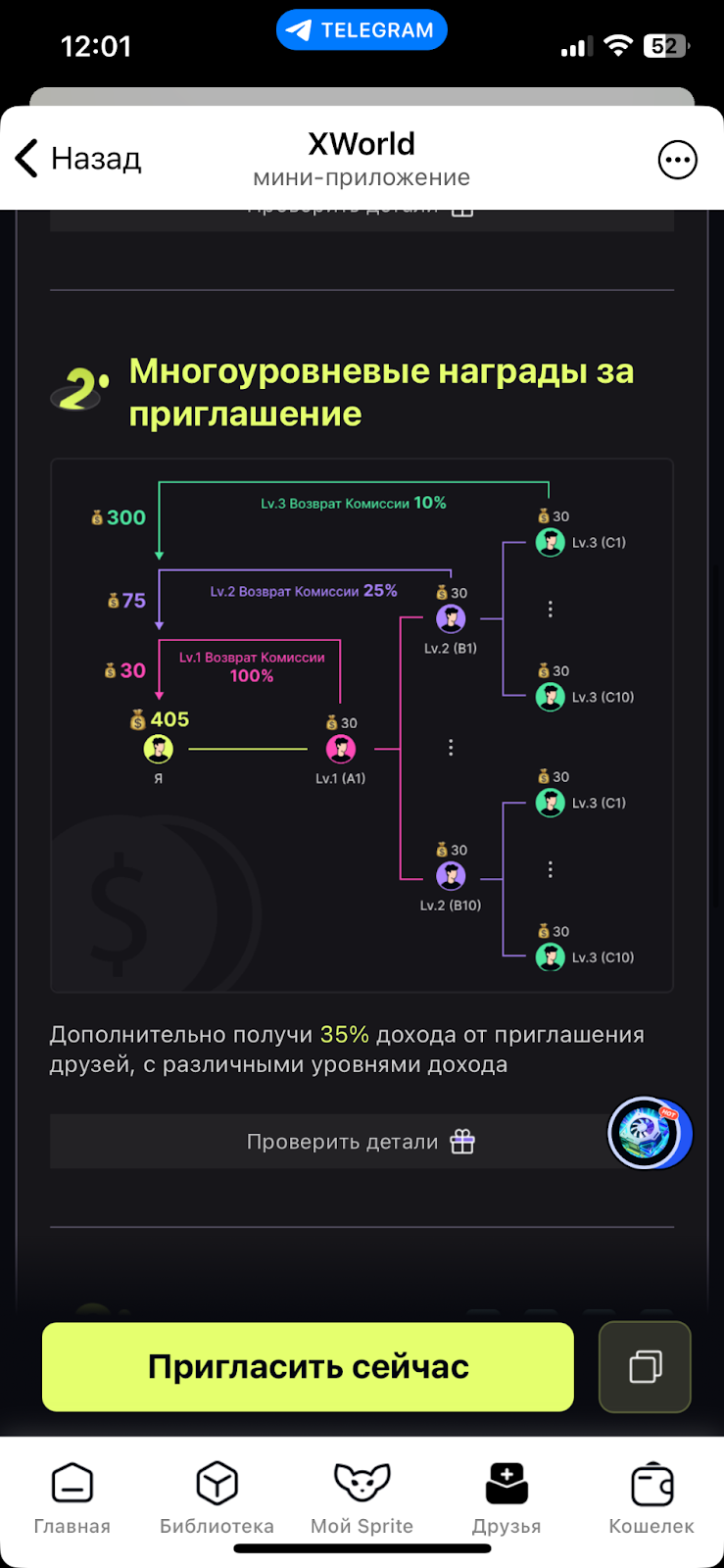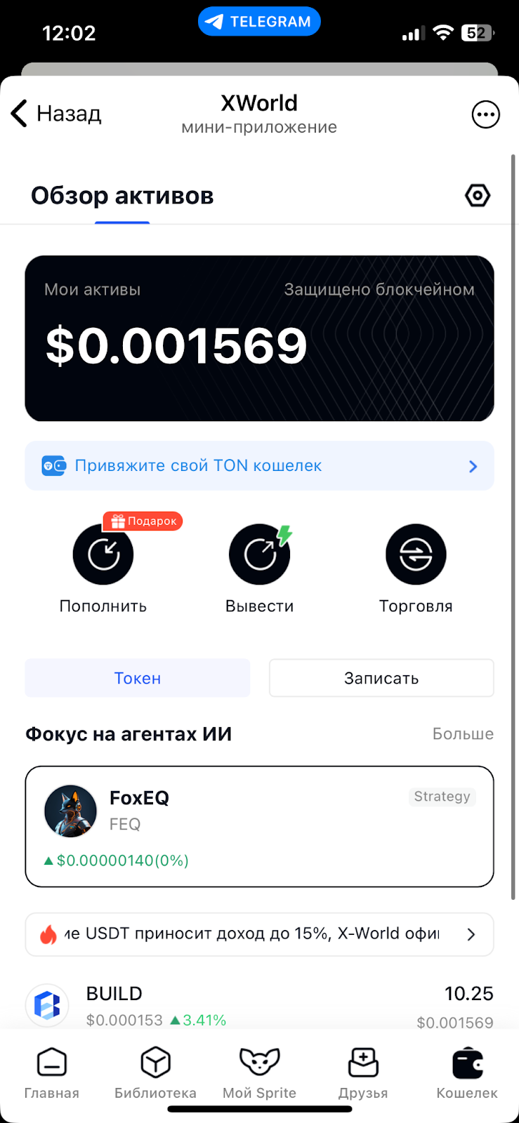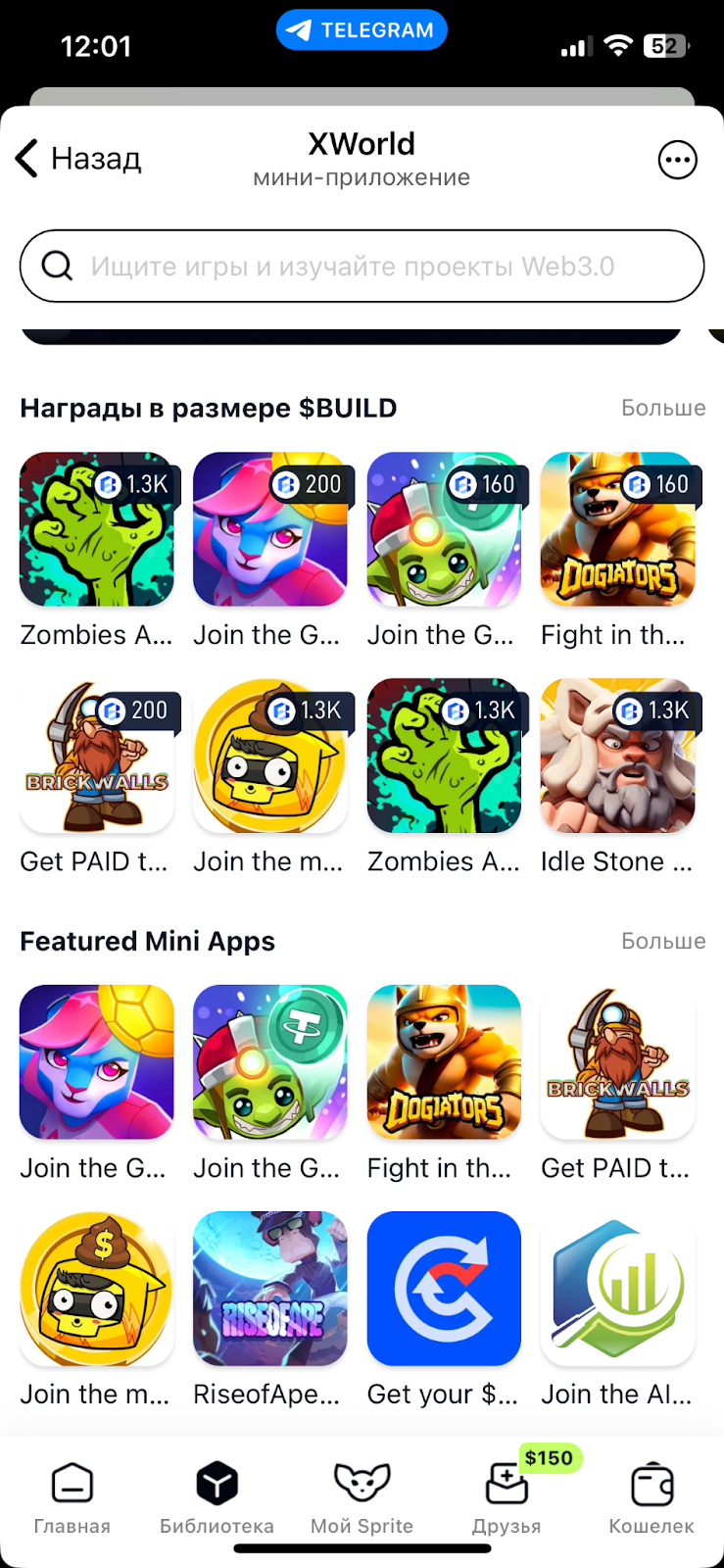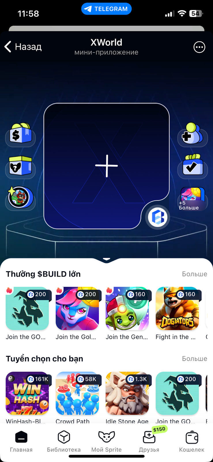 В приложении «Экс Ворлд» есть раздел «Библиотека» со списком приложений от сторонних разработчиков. Это партнерские предложения. За запуск представленных в списке игр выдают награды, которые могут достигать тысячи и более монет $BULD.