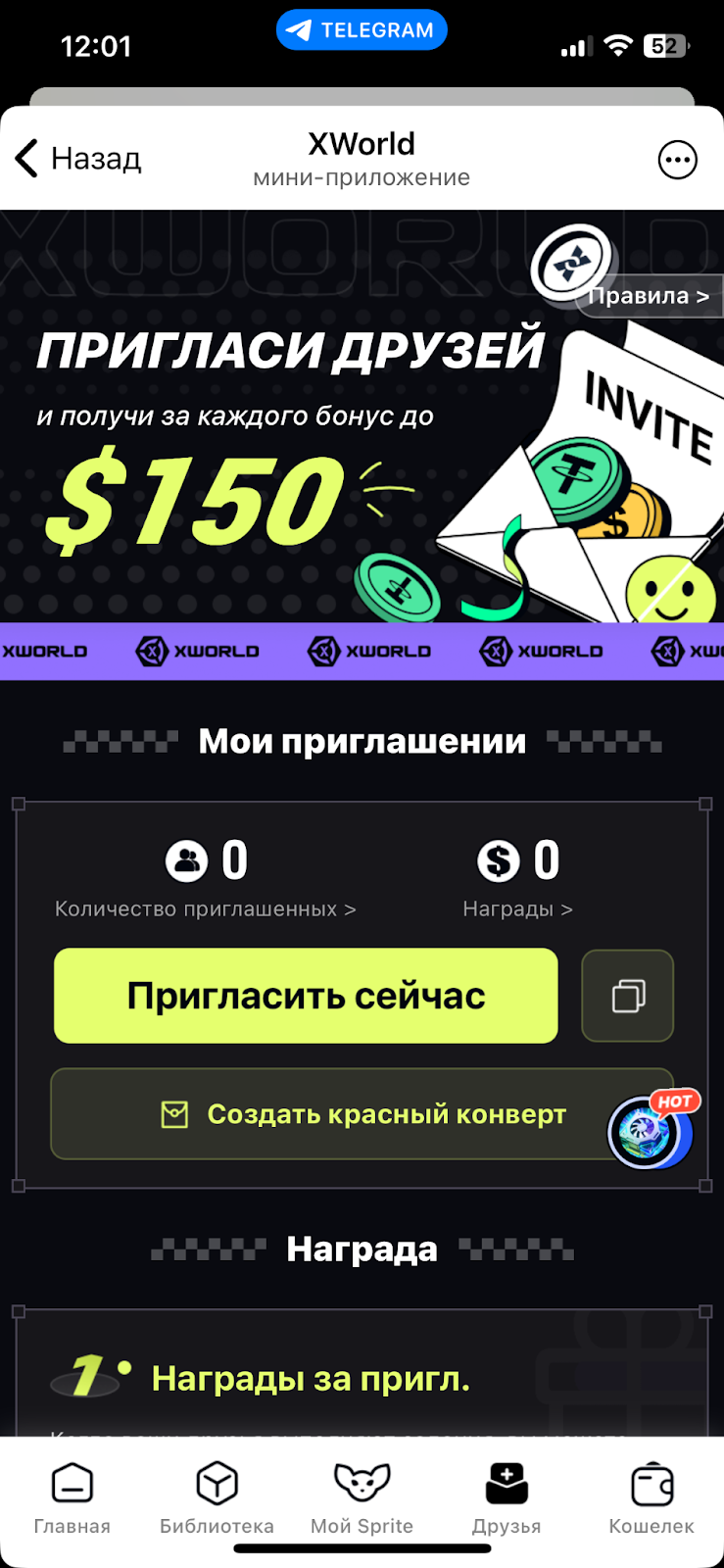 Когда писали данный обзор на тг-игру XWorld, мы столкнулись с проблемой. После нажатия на квадрат на секунду показывался дополнительные экран, но персонажа не выдавали. Проблему удалось решить путем полной перезагрузкой приложения.