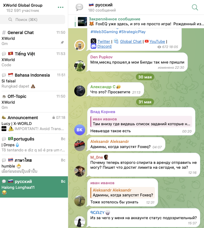 Общаться участникам сообщества предлагают в официальном чате. Он называется XWorld Global Group и находится по адресу xworld officialgroup.