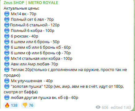 Что публиковал админ «UC Пабг Мобайл Zeus Shop»