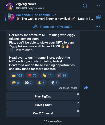 Когда разработчики поддерживали работоспособность zigzagworld, его новости удобнее всего было смотреть на telegram-канале команды основателей. Именно там анонсы выходили в первую очередь.