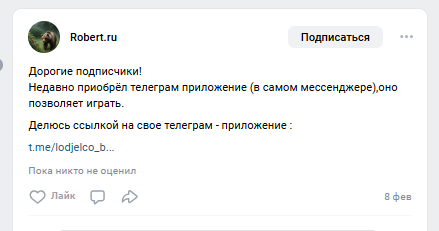 Бот запустили только в начале февраля, поэтому такое большое количество участников вызывает сомнения. В сети об этой игре очень мало информации, она, в основном появляется в соцсетях в форме объявлений якобы от владельца, с предложением пройти по ссылке и зарегистрироваться.