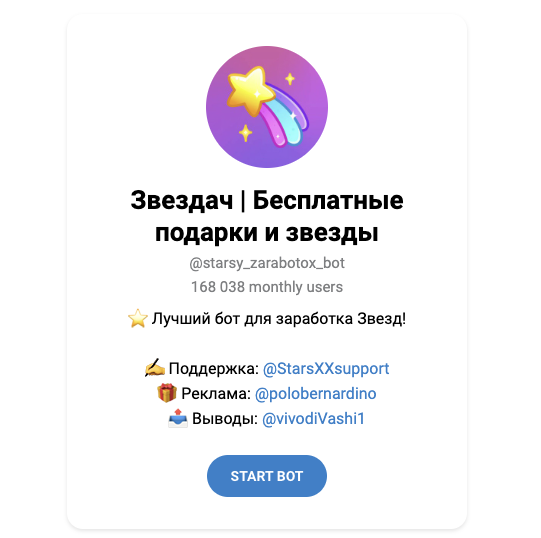 Обзор телеграмм-бота starsy zarabotox bot: что за сервис, возможно ли в нем заработать, а также анализ отзывов о «Звездач Бесплатные подарки и звезды»