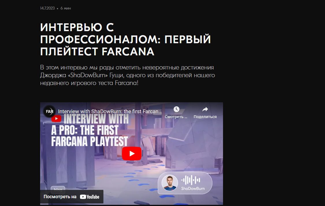 К тестированию игры привлечены профессиональные киберспортсмены. В их числе ShaDowBurn — экс-игрок Paris Eternal и основной игрок FaZe в Overwatch League. Он отмечает, что вместе с командой они тестируют игру Фаркану, используя ее в первую очередь для проверки собственных навыков и соревнований с единомышленниками.