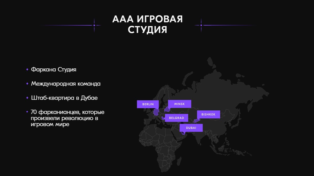 Штаб-квартира команды, работающей над созданием Farcana Crypto, находится в Дубае. Разработчики не скрывают свои личности и ведут открытую деятельность. Основателем компании является Ильман Шажаев, предприниматель международного уровня, инвестор. Всего в команде трудится более 70 человек из разных стран, в том числе из Республики Беларусь, Польши и Германии.