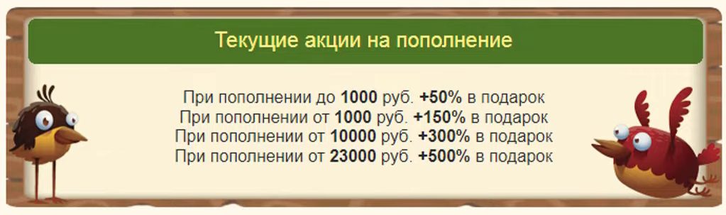 Новым юзерам обещают подарить 1000 единиц фейкового актива, а за пополнение счета будто бы начислят и настоящие деньги. Если допустить, что бонусы дают в них, а не внутриигровой валюте, то щедрость админов в принципе не объяснима, однако падкие до денег жулики в принципе не согласятся отдавать деньги из игры Profit Birds без мошеннических заморочек.