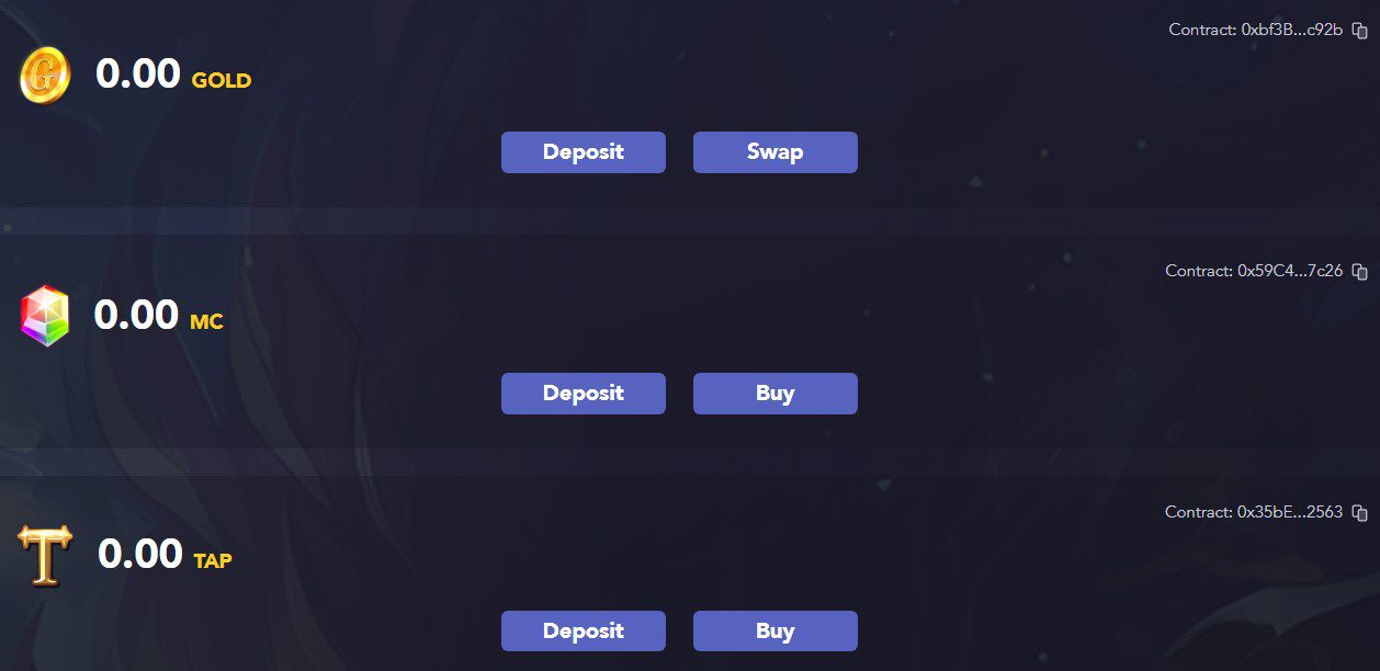 В качестве дополнительных средств расчета, а одновременно и многофункциональных инструментов, в игре Tap Fantasy задействуются Magic Crystal и GOLD. Магические кристаллы служат для улучшения и развития невзаимозаменяемых токенов. Золото является вспомогательной валютой, необходимой для проведения ежедневных расчетов. Монета привязана к Tether, обменивается на USDT, исходя из соотношения 10 к 1.