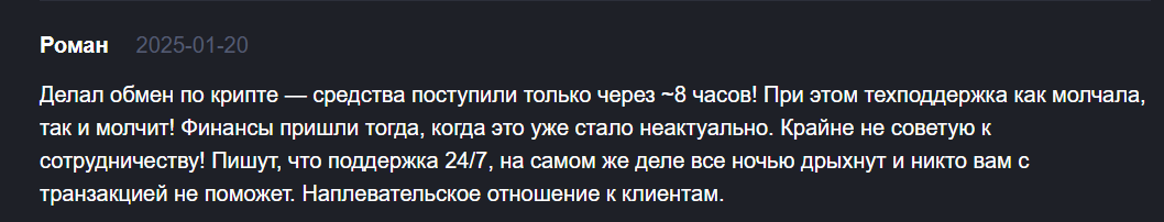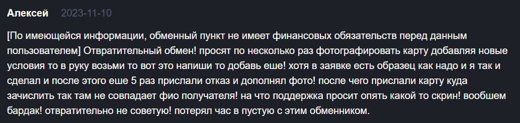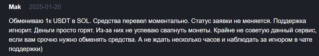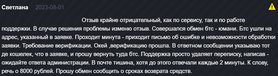 Проблемы безопасности. Хотя обменник заявляет об использовании расширенных мер безопасности, в сети появляются сообщения о взломах аккаунтов, несанкционированных транзакциях и недостаточных механизмах защиты.