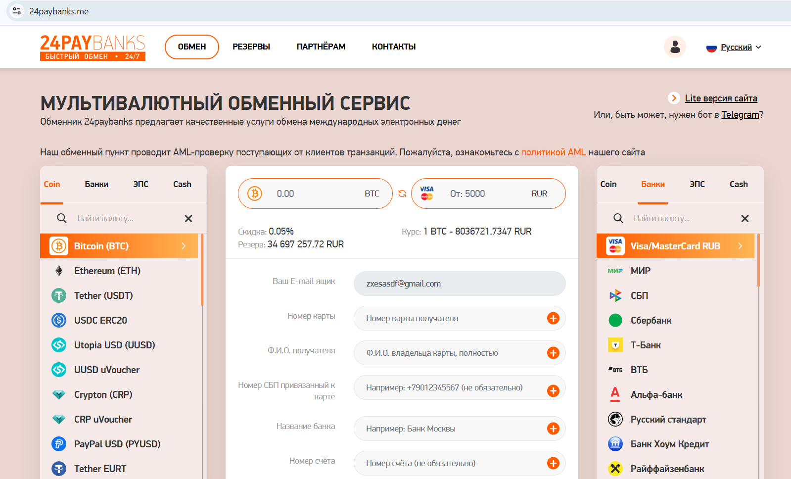 Рассмотрим детальнее принцип работы обменника 24paybank