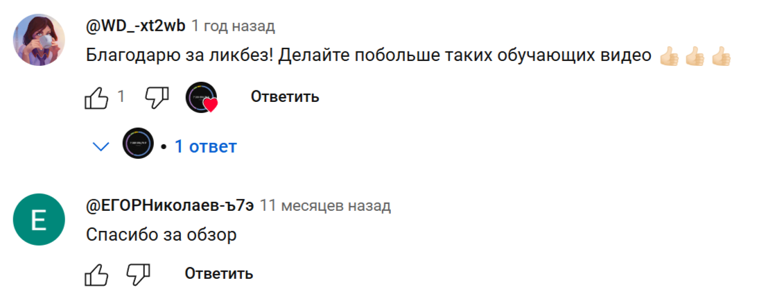 Комментарии клиентов можно найти под публикациями в Телеграмме или Ютубе. Здесь чаще всего инвестора благодаря за обзор или обсуждают контент.