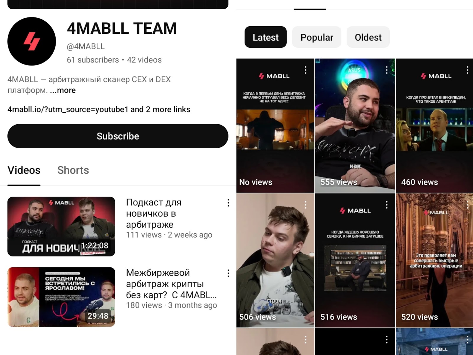 Всего опубликовано 42 видео, просмотры которых составляют 100-500. Тематика видеороликов посвящена арбитражу крипты.