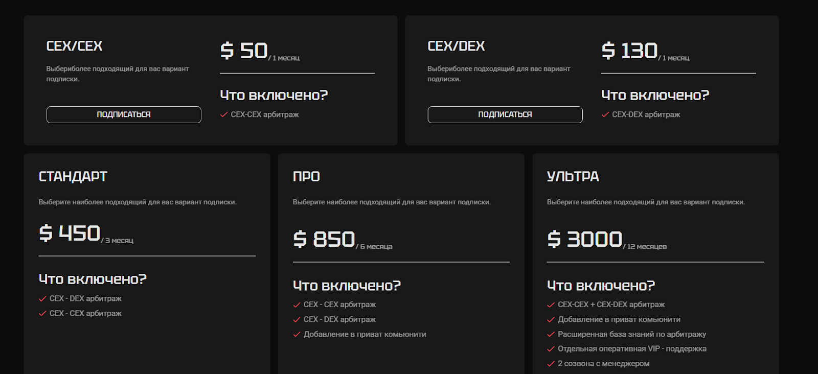 - Стандарт. Продается за 450 долларов в месяц. Предложен арбитраж централизованных и децентрализованных бирж;