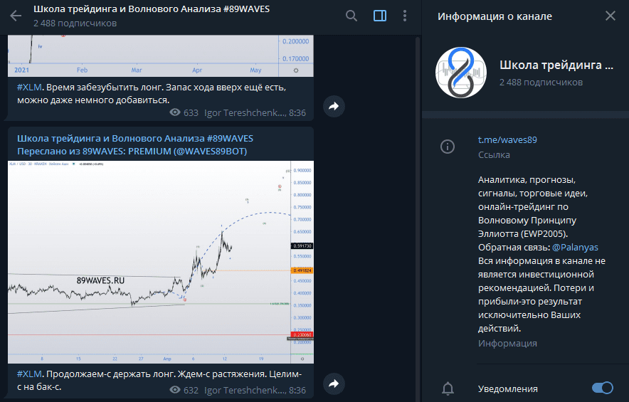 89WAVES – это трейдерский канал в Телеграм, представляющий собой пока еще некоммерческий образовательный проект для спекулянтов, изучающих Волновую теорию Эллиотта.