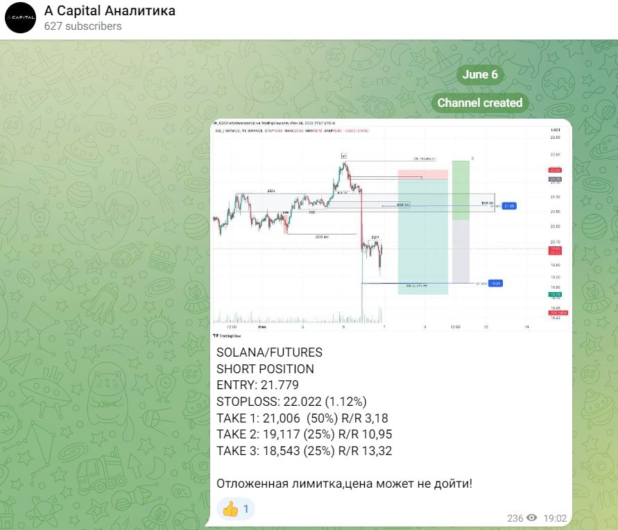A Capital — канал трейдера, предоставляющего торговые сигналы на бесплатной основе. Автор предупреждает подписчиков, что не несет ответственности за их использование и что все риски остаются на клиентах. В канале отсутствуют платные услуги, поэтому найти отзывы о проекте пока нельзя. Также не публикуется статистика, которая могла бы помочь оценить прибыльность проекта. Если у вас есть опыты работы с A Capital, расскажите о ваших впечатлениях в комментариях.