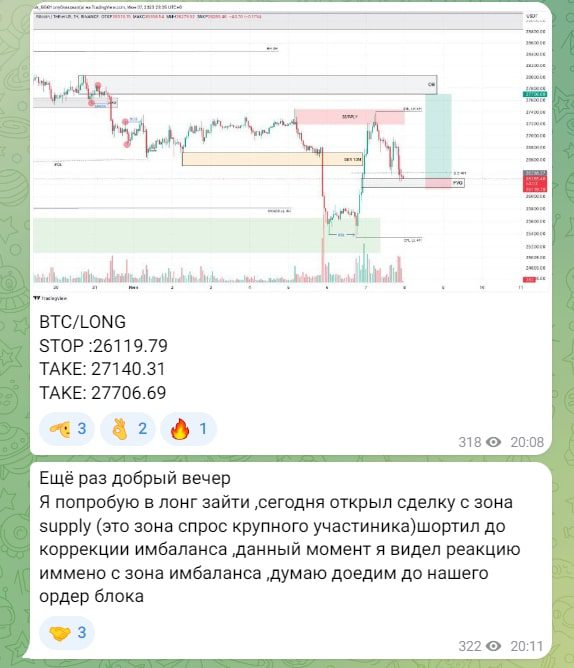 Телеграмм был создан в начале июня 2023 года и насчитывает около 600 подписчиков. В канале скрываются комментарии, реакции активны, но их мало. При этом охваты публикаций превышают 60%. Автор не рассказывает о себе, а только публикует новости и идеи по торговле криптовалютами и иногда появляется на видео, комментируя рынок. Трейдеру лет 20-25, он применяет в анализе стратегию Smart Money, чтобы определить моменты входа в рынок. В канале отсутствует реклама услуг или других проектов.