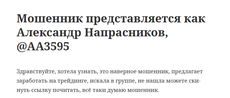 Обзор трейдера Александр Напрасников: отзывы клиентов, кто такой AA3595