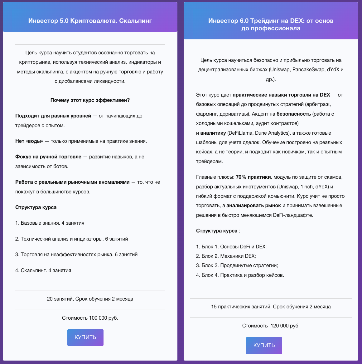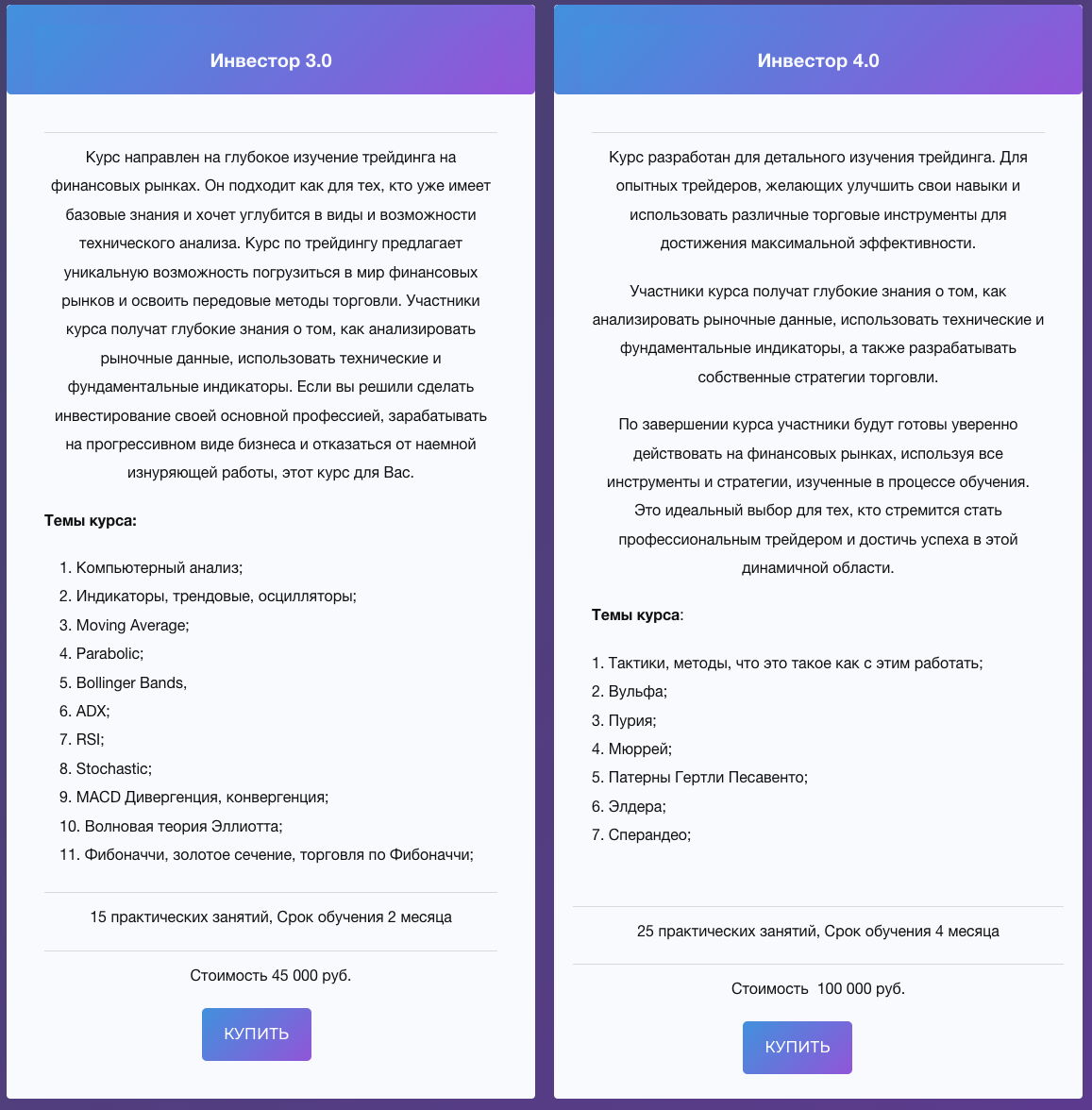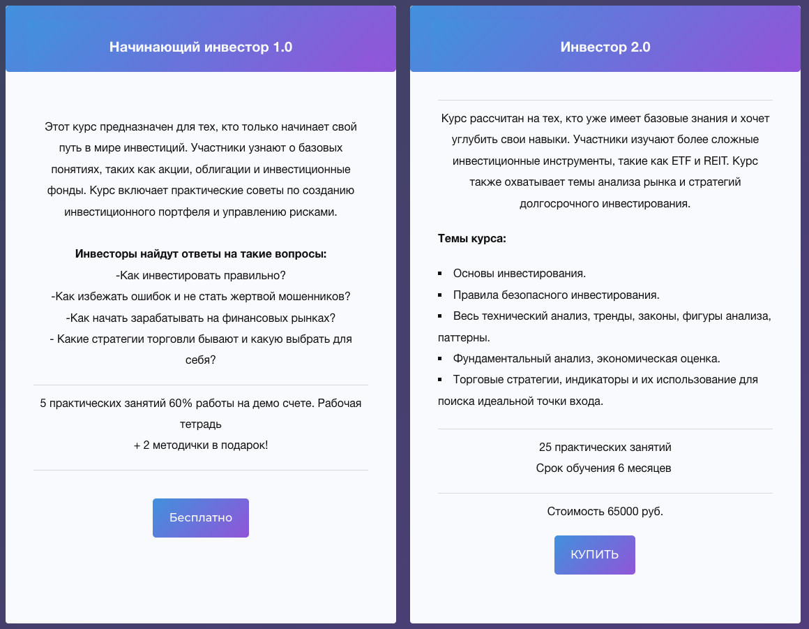 Более продвинутые образовательные пакеты стоят 45-120 тысяч рублей. Они предполагают углубленное изучение инвестирования.