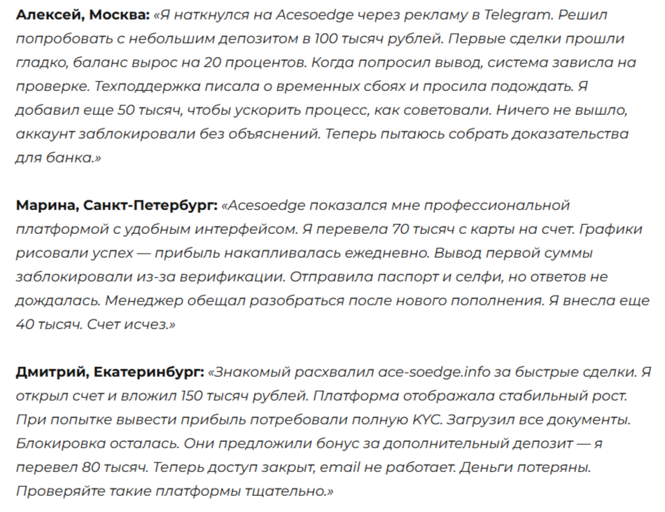 Обзор инвестиционной платформы Acesoedge Com: отзывы реальных пользователей и анализ деятельности «Ацесоедж»
