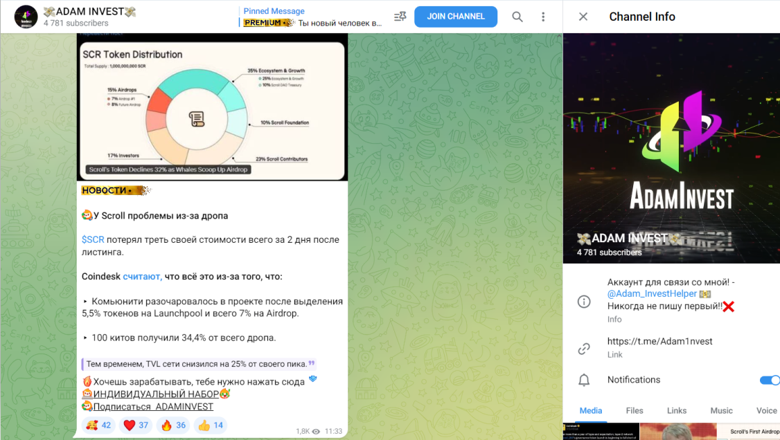 Общие сведения о Telegram сообществе Adam Invest и его основателе