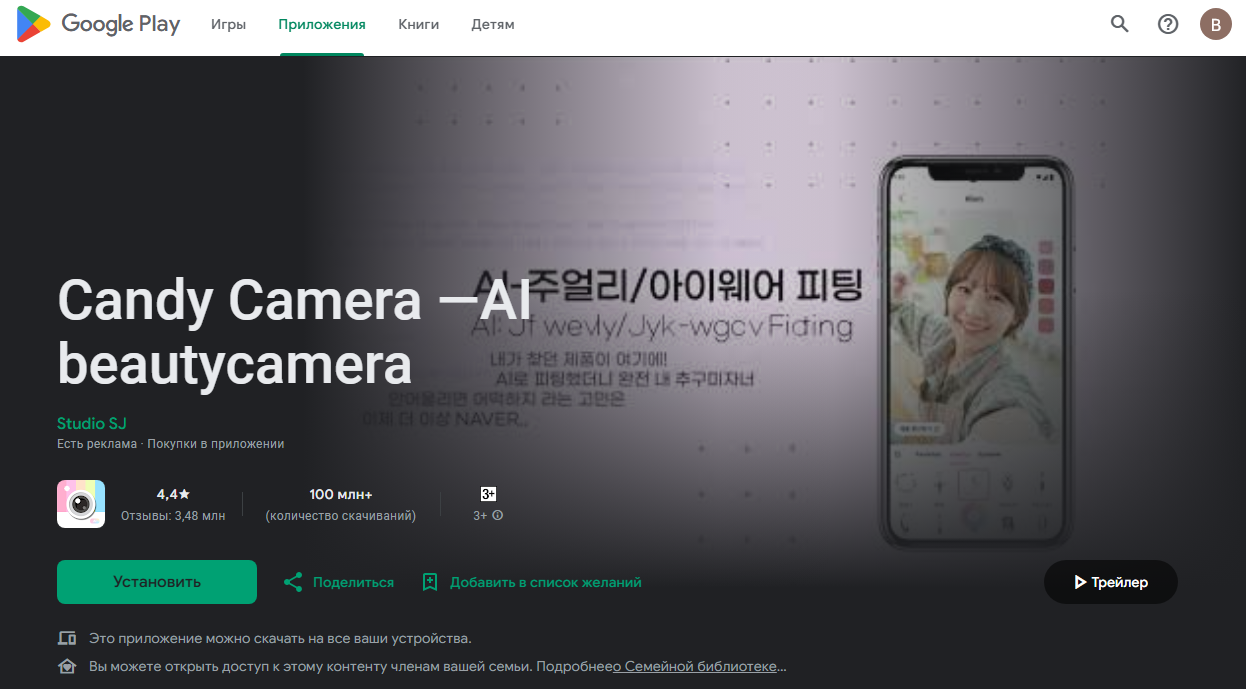 В основе проекта — приложение Candy Camera — AI beautycamera. Скачиваний у него уже более 300 миллионов. И это хороший пример устойчивого интереса аудитории к проекту.