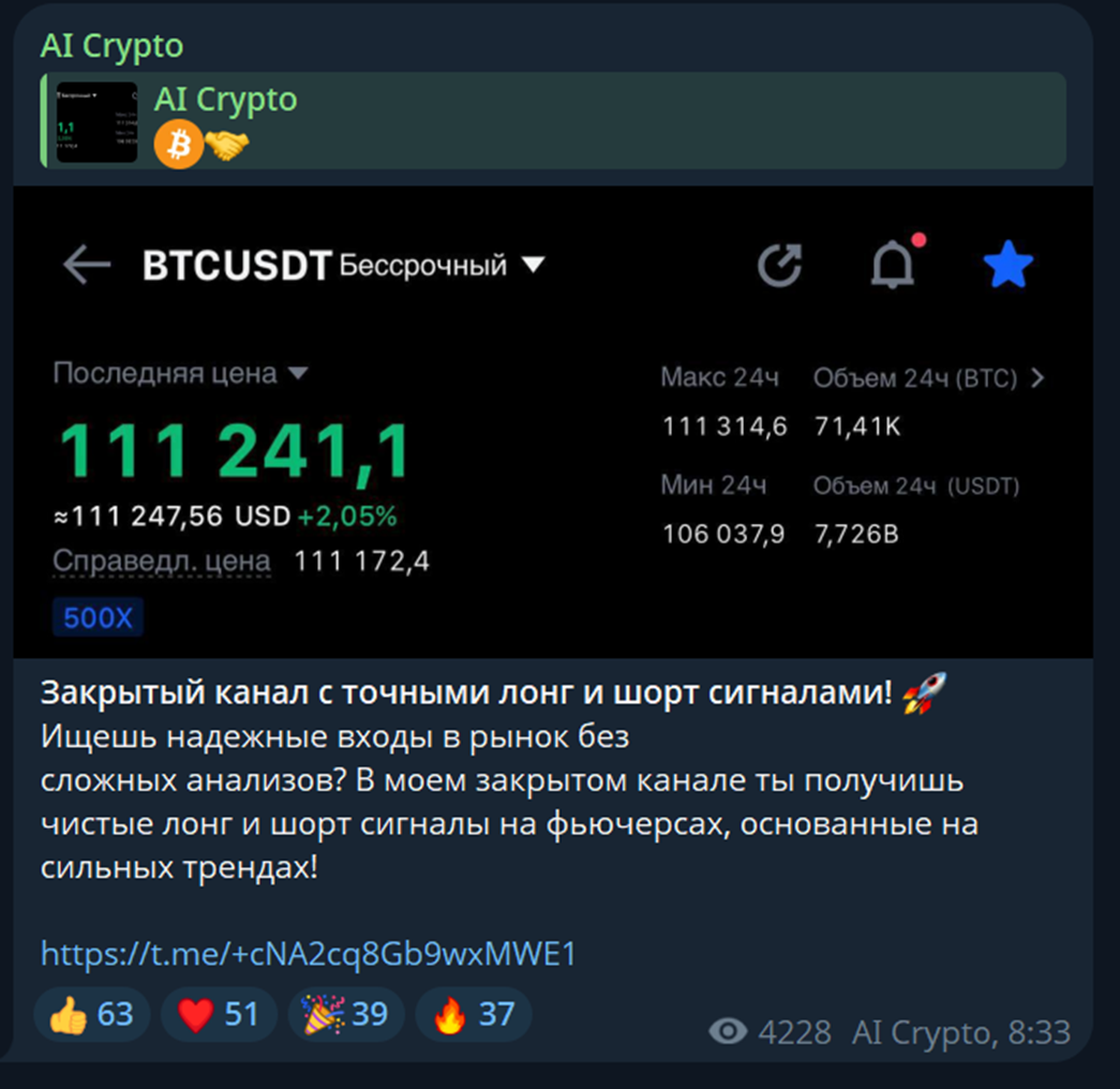 AI Crypto позиционируется как канал для инвесторов и трейдеров. Здесь обещают публиковать аналитические обзоры, новости криптовалют, обзоры трейдерских инструментов и прочее. Пользователям также предлагают воспользоваться сигналами от специалистов, которые могут помочь хорошо заработать. В этой статье мы рассмотрим, стоит ли подписываться на данную площадку и пользоваться услугами или лучше остерегаться мошенников.