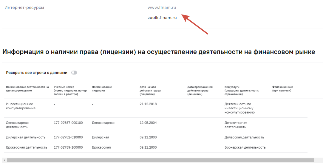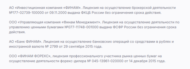 В реестре центрального банка действительно находятся эти фирмы. Только в списке с источниками ресурса не указывается сайт, на котором расположены обучения по трейдингу с нуля школы «Финам». Плюс, образовательной лицензии у компании не видно, и это странно. Получается, что легально она может работать только как финансовая и инвестиционная контора.