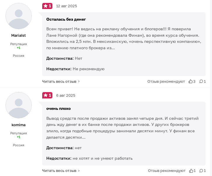 Причем негативные отзывы пользователи активно поддерживают. Такие высказывания об обучениях по трейдингу «Финам» ходят с 2017 года и по настоящее время. В основном, люди жалуются на то, что курсы являются пустышкой.