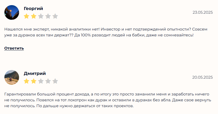 Поэтому обратимся к сторонним специализированным ресурсам, где пользователи делятся своими независимыми мнениями относительно различных финансовых проектов.