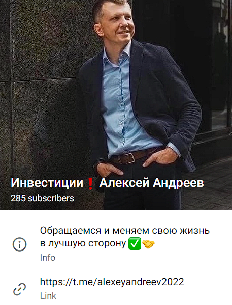 Алексей Андреев – трейдер и инвестор, который ведет свою деятельность в мессенджере Telegram. В своем канале alexeyandreew2022 предлагает пользователям «менять жизнь в лучшую сторону», доверяя раскрутчику свой депозит.