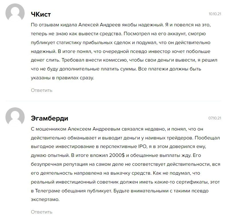 алексей андреев инвестиции отзывы реальных людей