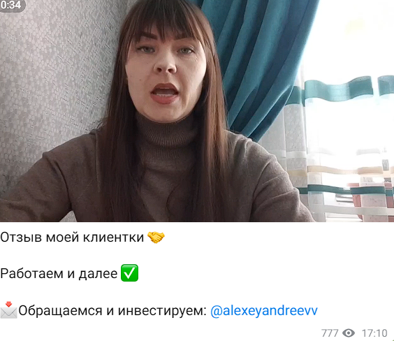 Чтобы ее подтвердить, разводила публикует в ленте десятки фейковых отзывов. Что интересно, ни на одном из них не упоминается имя и фамилия самого трейдера. Вероятнее всего, Андреев украл их в аналогичных Телеграмм-каналах.